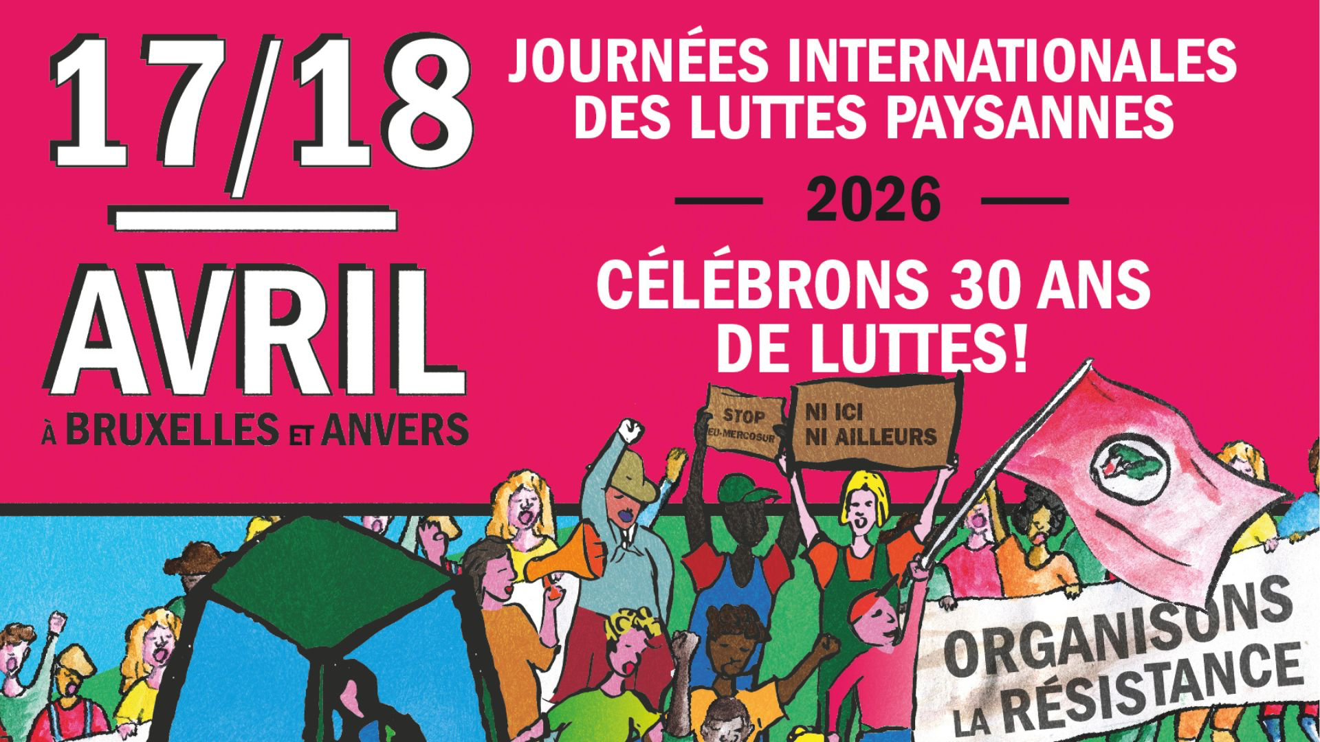 La journée commencera dès 9h au CNCD (9 quai du Commerce 1000 Bruxelles) avec une matinée de conférences sur le thème global « Les luttes paysannes pour changer la recette du système alimentaire ».